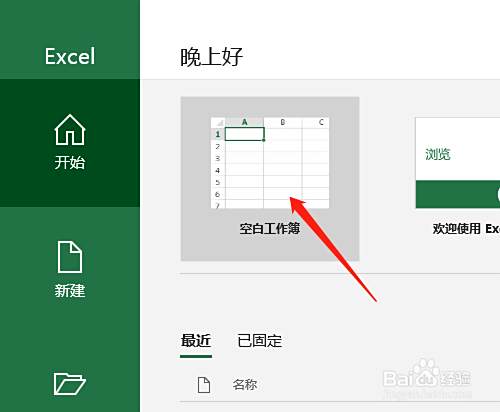 2. 单击空白工作簿,新建空白文档。