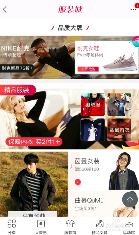 将服装城页面网上拉,拉到中间位置,你可以看到一些名牌服饰,选择你所需要的品牌,点击进入;