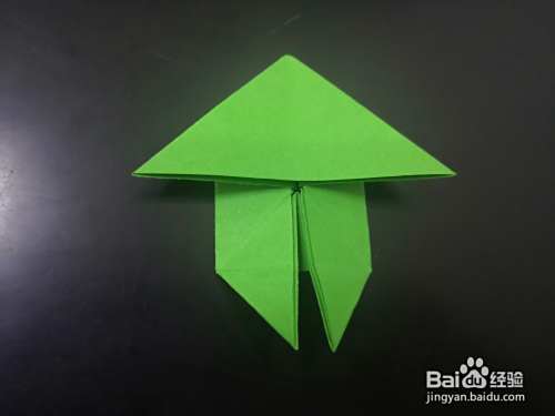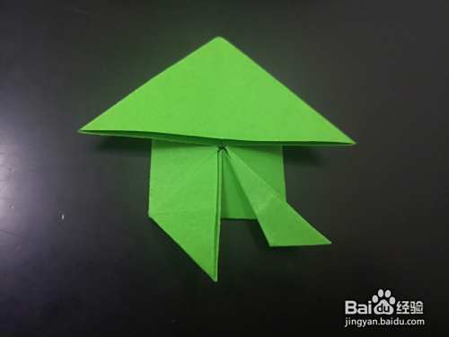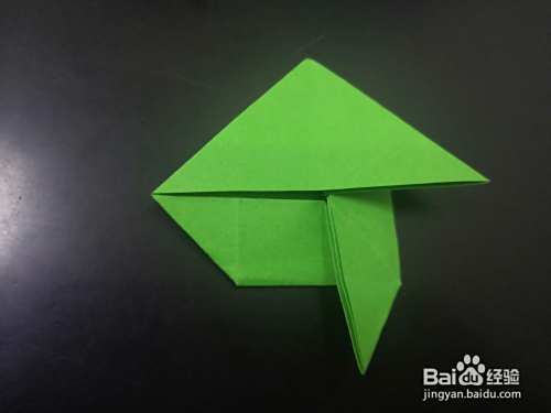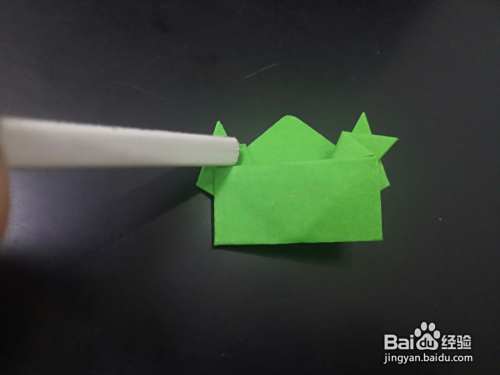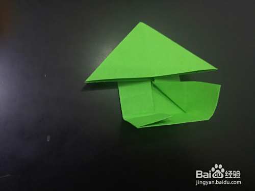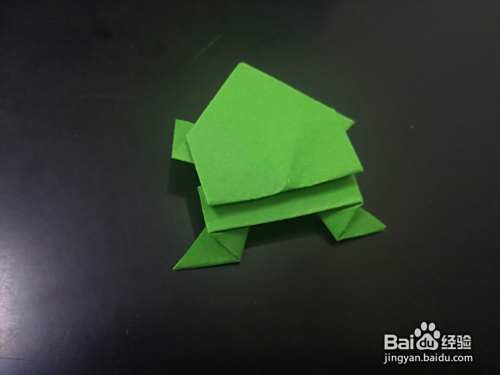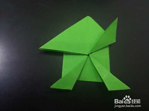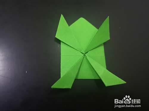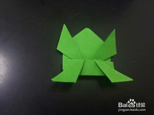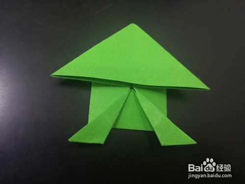 将下半部分折上去,留下一段距离后再翻折下来,翻面,一只小青蛙就折好啦。