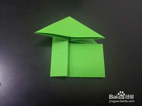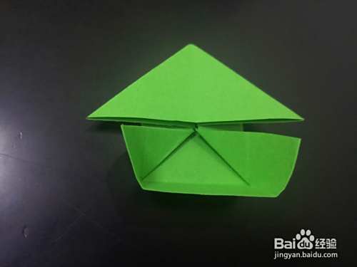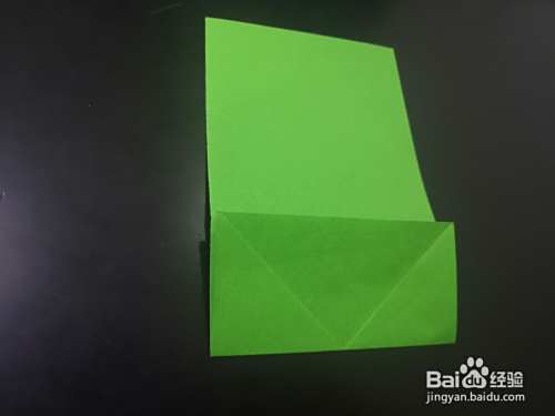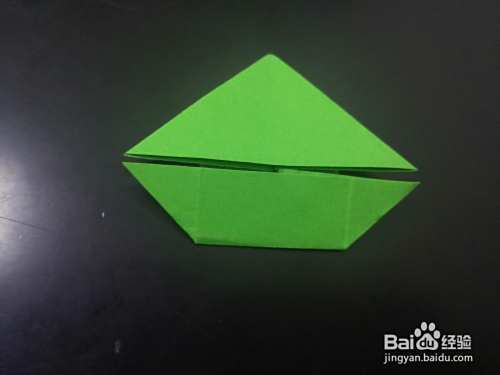 将折上去的角分别拉开,压出两条斜线,然后底端的边根据折痕向下压实。
