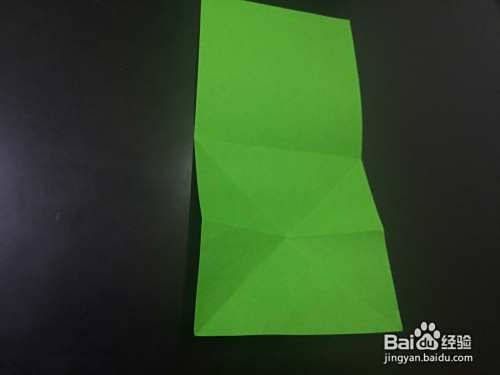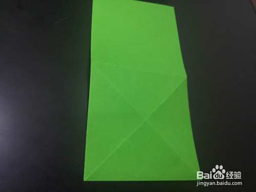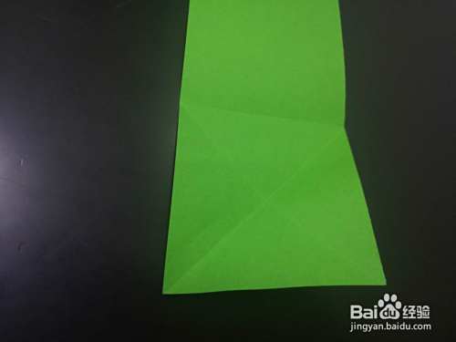 翻面,将该端的短边向内对齐中线折,留出折痕后,再翻面。