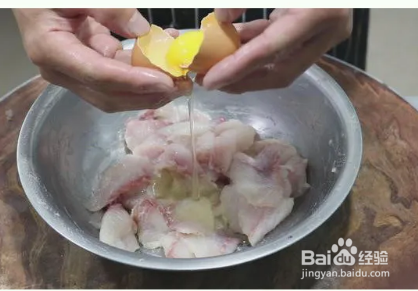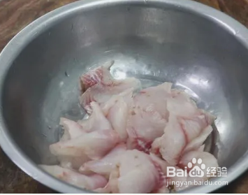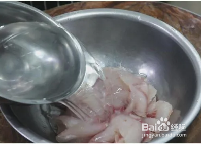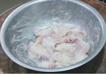 洗去鱼片的血水,然后挤干水分放到盆里,在放入玉米淀粉拌匀腌制5分钟左右。
