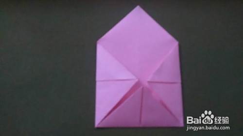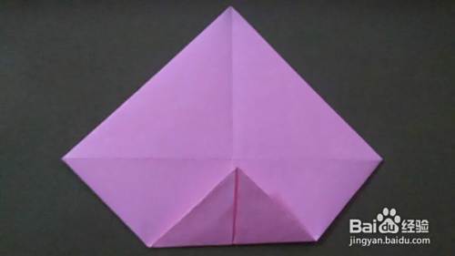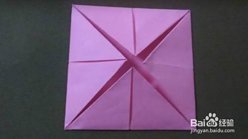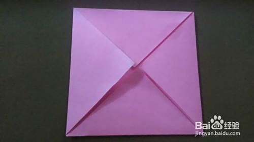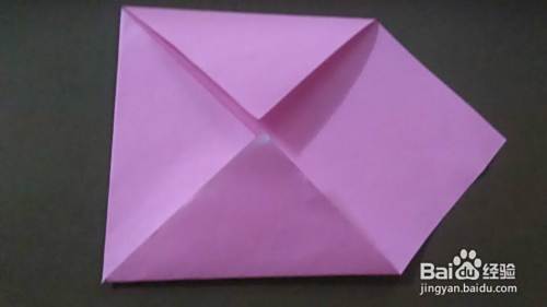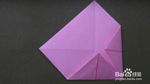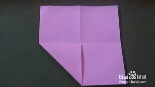 4捏住其中的一个角向纸张的中心折,做折痕后如图。