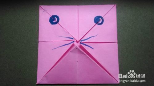 画上猫咪的胡须。猫咪的做法就画上句号了!用两手的拇指和食指分别插入背面的四个小口袋中,有规律的上下左右运动,小猫咪就会冲着你乐了!