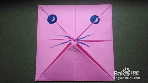 折第四个角,做折痕。逗乐猫的形象基本完成。