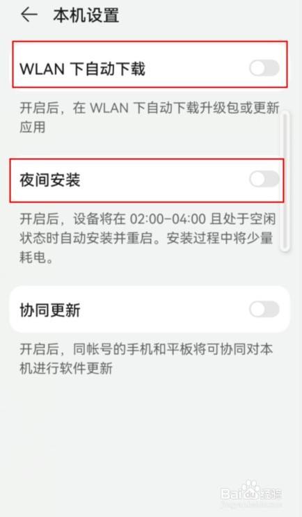 点击关闭关闭WALN下自动下载和夜间安装后面的按钮。