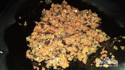 油热后倒入肉馅,翻炒。