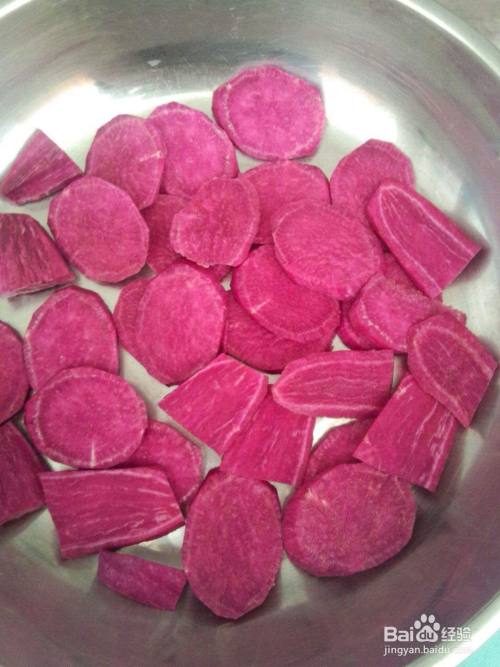 发面过程中处理紫薯,去皮,洗净,切成薄片,上锅蒸熟