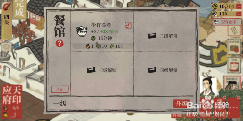 然后,点击餐馆,会出来一个弹窗,你可以选择制造不同分量的菜肴,花费的铜钱数量不一样。