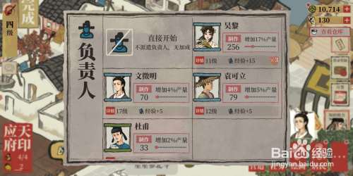 接着,选择菜肴的分量后,就要选择负责人,不同的负责人对生产量有不同的加成。