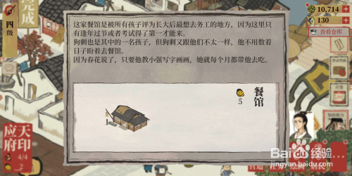 首先,打开游戏之后,在你的江南百景图中找到餐馆,如果没有餐馆则点击营造。