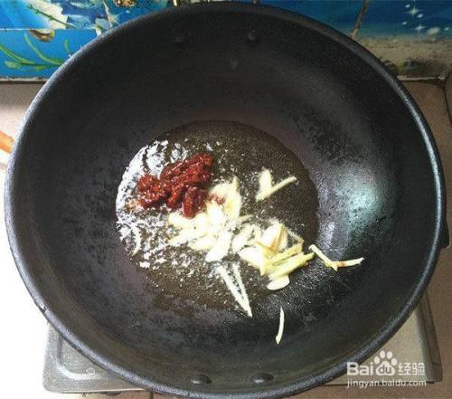 另外一边锅里热油,加入葱姜蒜爆香锅底。