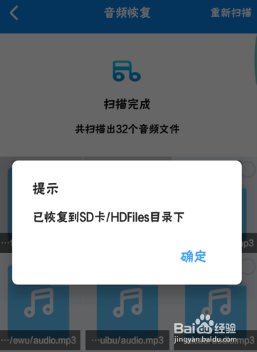 扫描完成后勾选需要恢复的音频文件,点击“恢复”按钮,当弹出提示时点“确定”按钮即可完成恢复。