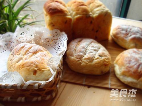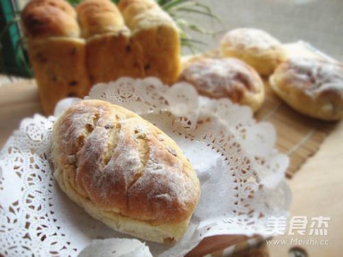 7放在温暖的地方发酵至两倍大后,分割成6份,以及一个吐司面团的分量
