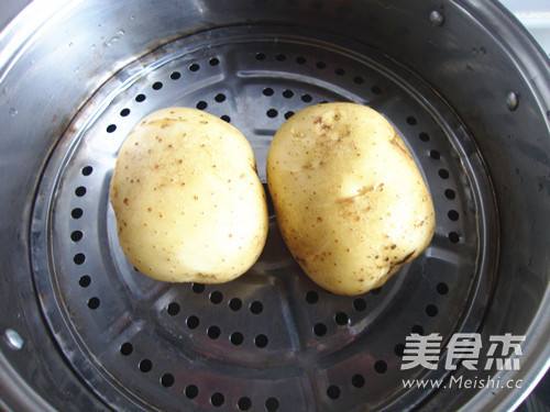 1两个土豆约300克,蒸熟,去皮,压成泥,晾凉待用