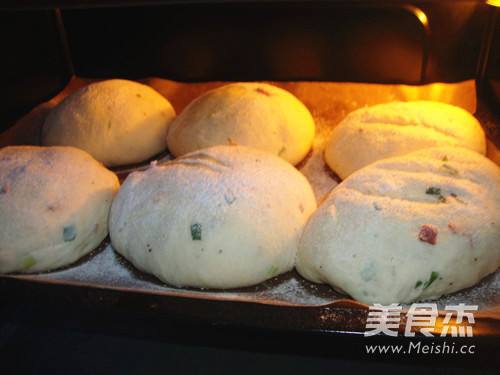 9发酵大约40分钟,撒上一些面粉,表面割口,烤箱预热170度,中层烤20分钟