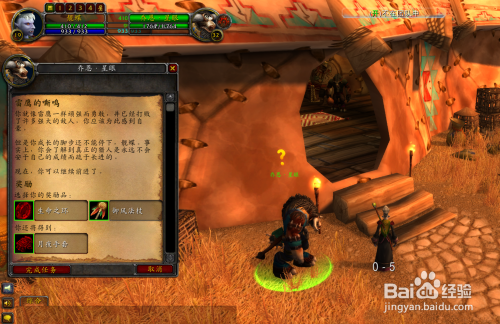 【任务重点】在贫瘠之地陶拉祖营地的"乔恩·星眼"处接的任务,需要找到一只雷鹰,杀掉它,然后把它的翅膀交给陶拉祖营地的乔恩·星眼。