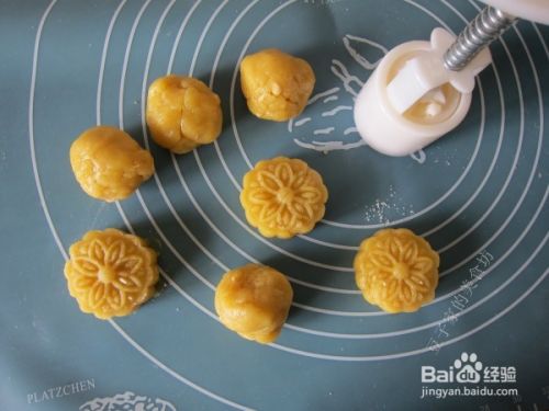 分成大小一致的面胚,用模具按压一下,有些粘在模具里边撒点干面粉。