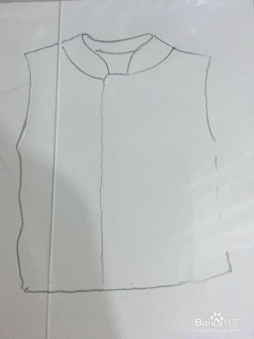 第三步 然后从领子的两端向外 画上斜肩线 向下画上袖子窝 和前衣片