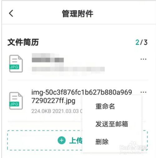 这样就可以上传成功啦~点击右侧【...】还能进行重命名、发送邮箱及删除操作。