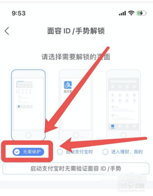 在解锁设置界面,勾选【无需保护】图标选项,设置完成。