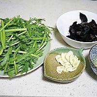 放入蒜片爆香,接着放入木耳,加入生抽调味。