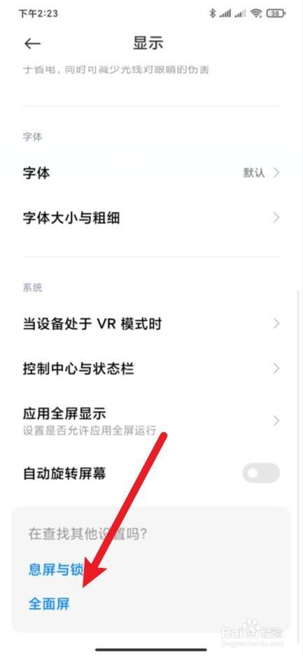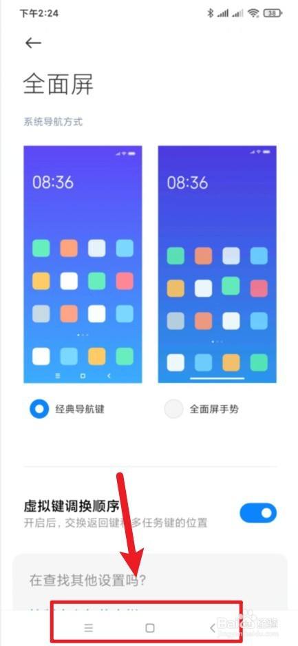 小米手机可以通过进入设置页面,点击显示,选择全面屏,点击经典导航键或者点击全面屏手势来切换全屏和经典。