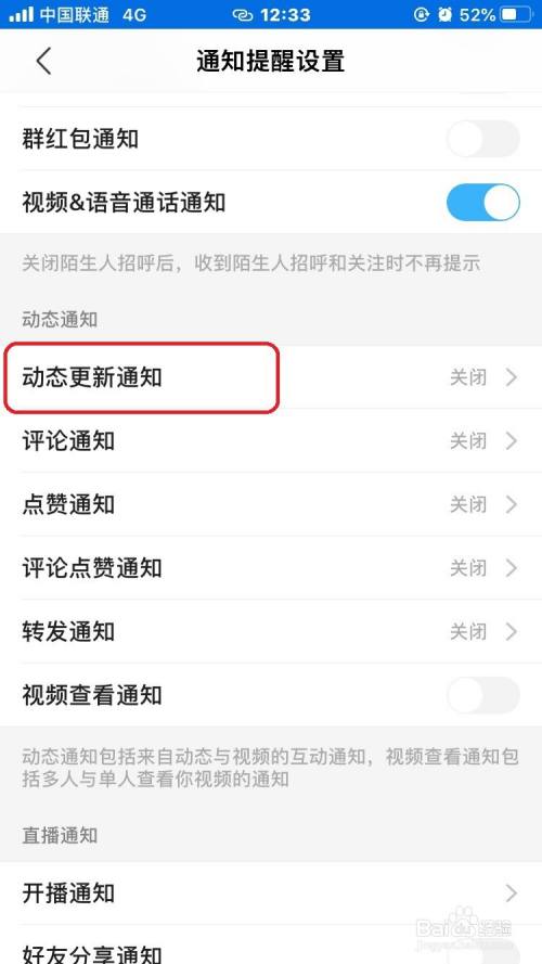 第五步:再点击“动态更新通知”,然后勾线“关闭”即可。