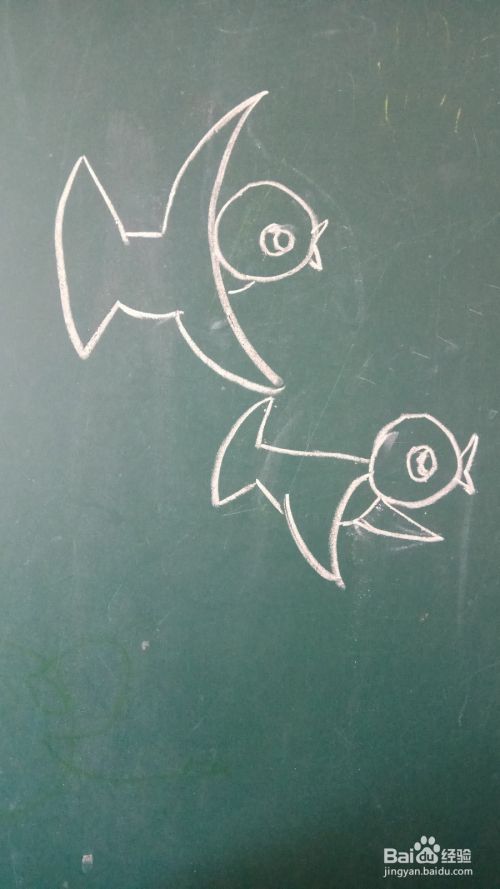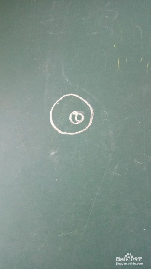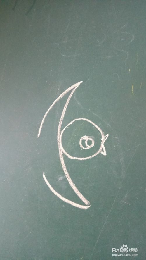 在黑板上画出一个圆圈,在圆圈中间再画一个小圆圈,这是小鸟的头部和眼睛。