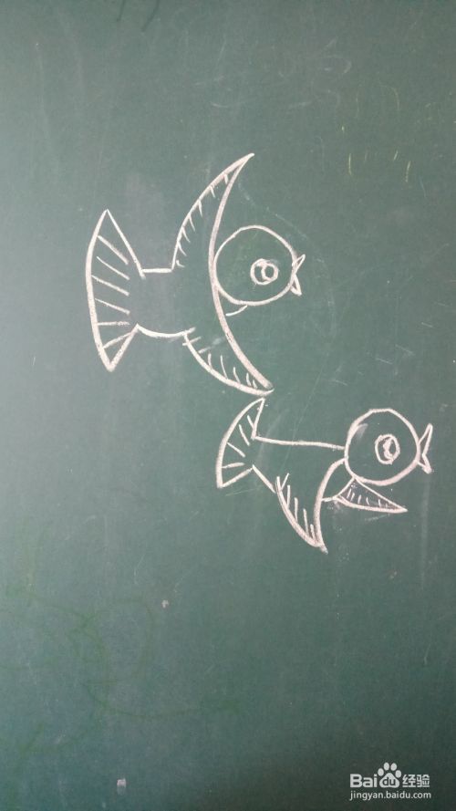 再用同样的方法画出另外一只小鸟,可以将小鸟的翅膀向下画。