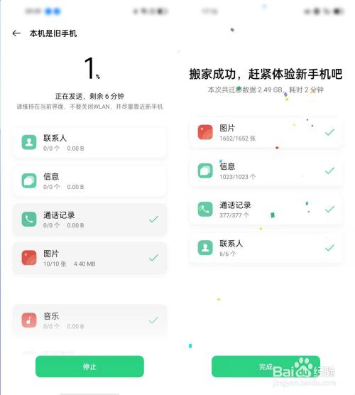 选好之后点击“开始传输”,输入隐私密码(一般为锁屏数字密码),一段时间后就搬家成功啦~