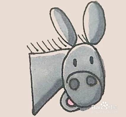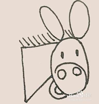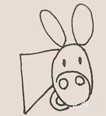 然后在上面画上两个椭圆形作为驴的耳朵。
