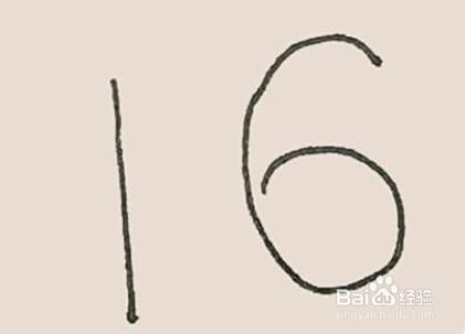 用两条对角线连接“1”和“6”,并延长“6”的弧。