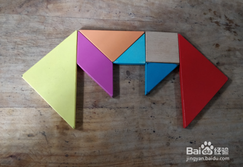 摆上红色三角形,放在正方形右侧挨着,如图。这样就完成了。