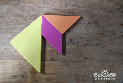 摆上黄色三角形,放在平行四边形的左侧挨着,如图。