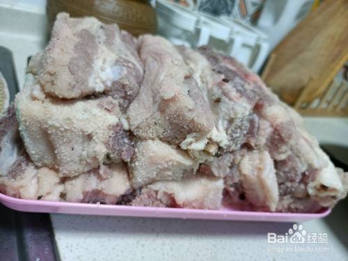 切好的五花肉均匀的裹上香料盐,缝缝里也不要放过哦