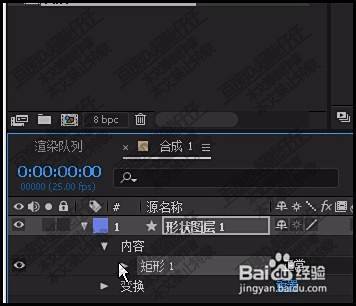 在合成窗口这里,鼠标选中右边的两个锚点向左边移,把矩形缩到看不见。