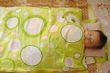 将薄棉被折起,能盖到婴儿的全身,稍长、稍宽松的状态。