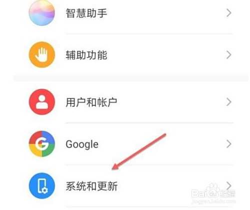 点击设置中的系统和更新