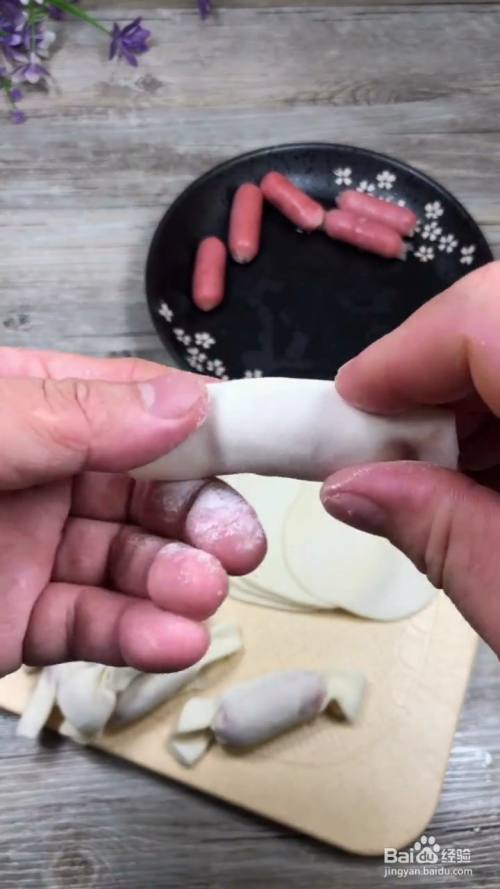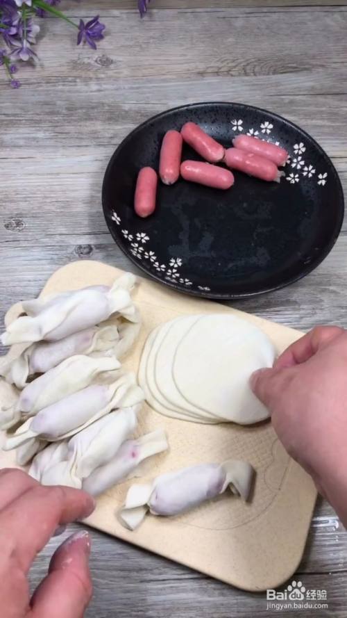 准备饺子皮和火腿肠