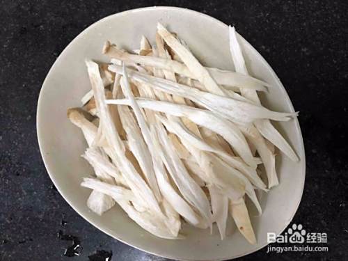 杏鲍菇洗净沥干水分,撕成长条备用。