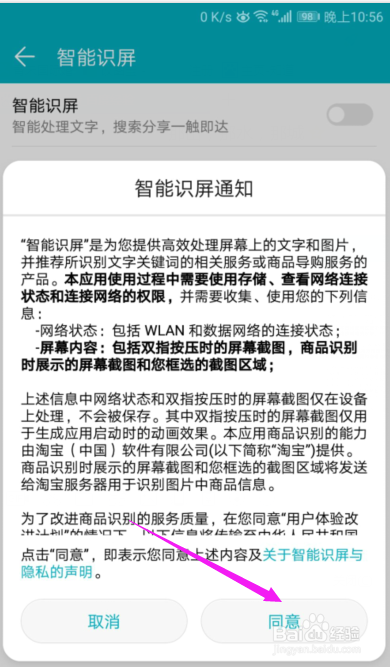 【智能识屏】协议,我们进行同意下,如图。