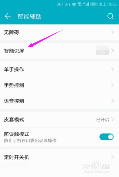 手机的【智能辅助】页,【智能识屏】按开下,如图。