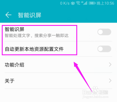 【自动更新本地资源配置文件】和【智能识屏】就同时开了,如图。