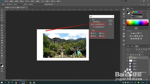 4.点选【左上角像素颜色】,在裁切范围里选择需要裁切的方位。点击确定可以看到图像左边的中的颜色像素被自动裁切了。