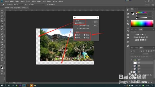 在打开的对话框中点选【透明像素】,裁切范围里选择需要裁切的方位。