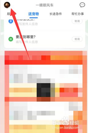 打开手机,找到并点击一喂顺风车,进入后再点击左上角头像。(如图所示)