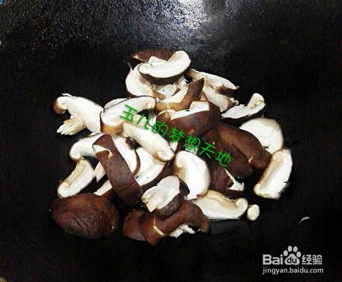 接着把鲜香菇放进去,开大火把香菇炒软。