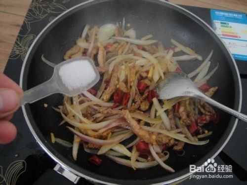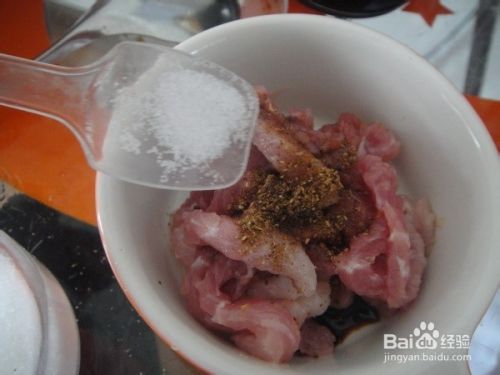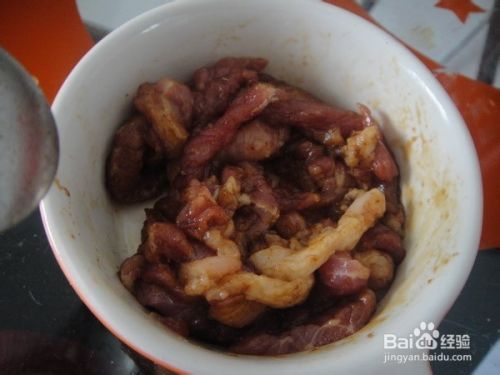 猪肉丝拌匀腌制一会,(本应该放入适量淀粉上浆,但是忘记了)