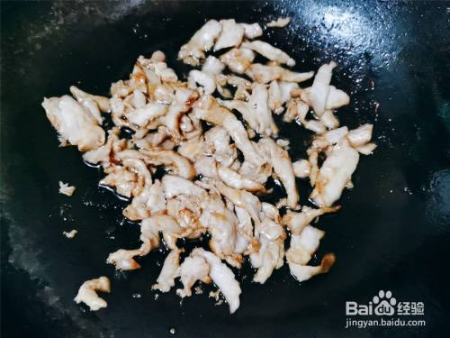 起锅热油,把猪肉放入锅大火爆炒二分钟。